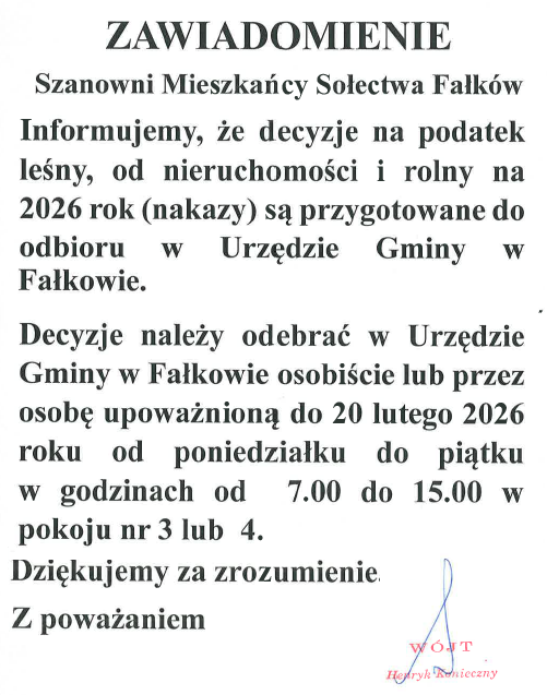 Zgłaszać można wszystkich chętnych Jubilatów mających miejsce zameldowania na pobyt stały na terenie Gminy Fałków. Zgłoszenia mogą dokonać sami Jubilaci lub osoby najbliższe, w formie pisemnej wypełniając wniosek dostępny na stronie internetowej Gminy Fałków www.falkow.pl oraz w USC w Fałkowie (budynek UG), pokój nr 2, tel. 44 787 35 35 wew.102, w terminie do 27 lutego 2026 r.