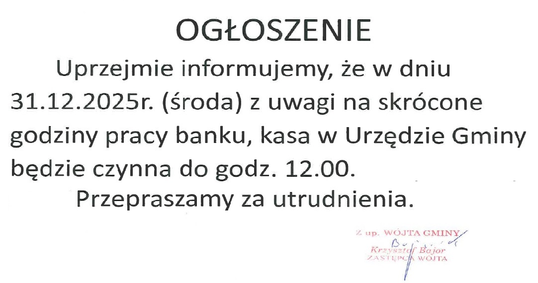 Wójt Gminy - Henryk Konieczny Skarbnik Gminy - Anna Wajnberger