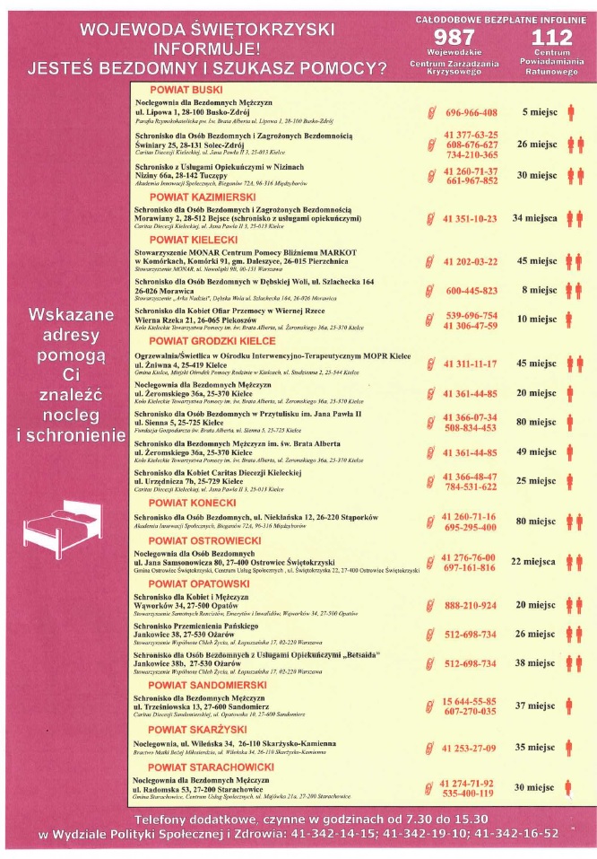 Placówki dla osób bezdomnych działające na terenie województwa świętokrzyskiego.